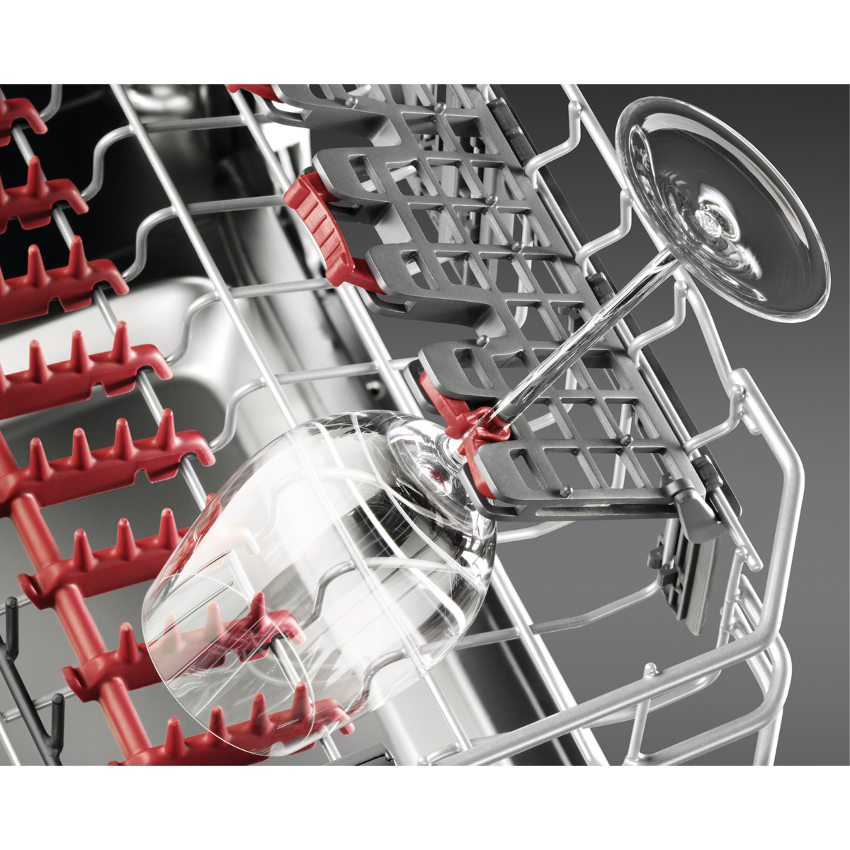 Even powerful dishwashers need to handle glassware gently. Luckily the upper basket in this dishwasher has 7000 SoftGrips and SoftSpikes® that securely hold your glasses and make sure they don’t get scratched or break.